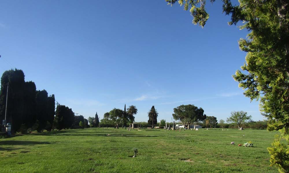 Farmington Memorial Park is located just south of the small community of Farmington, California. As the name implies the cemetery is located in a rural setting. It is bordered on the north by Little John's Creek, Almond orchards on the three other sides. On the east there is a magnificent view of the Sierra Nevada Mountain Range. This allows for a quiet place for reverence and reflection.